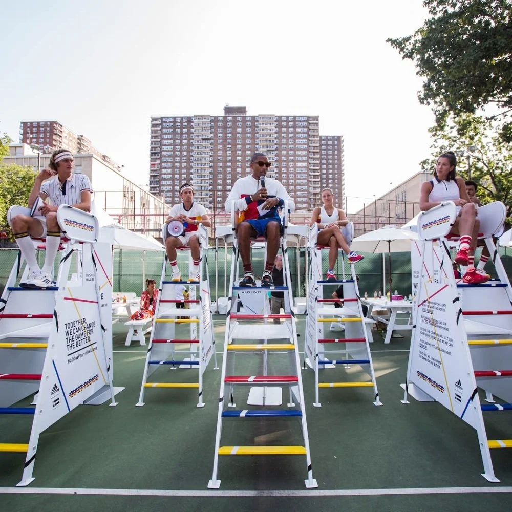 Adidas and Pharrell Williams teamed up for a collaboration that challenged tennis’ rigid dress code. To launch a collection with such a subversive intention, we took one of tennis’ biggest traditions and flipped it on its head. During the US Open, while the umpires where urging the crowds to be "quiet please", we took to the streets and invited New York to speak up.